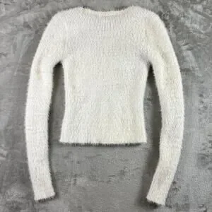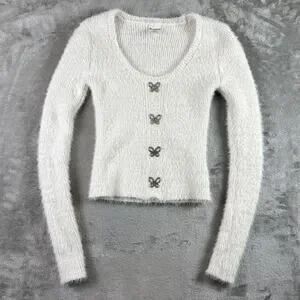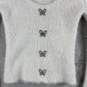 No Boundaries Fuzzy Butterfly Cardigan Womens XS White Soft Girl Y2K