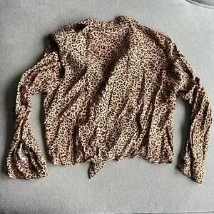 H&M blouse with allover leopard print. Tie-front style and button-up detail. Lightweight, drapey fabric with long sleeves. Versatile piece for casual or dressed-up looks. Size 2. Smoke free and pet free home.