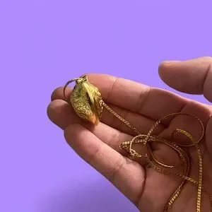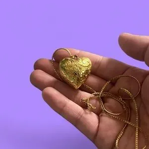 Vintage Gold Puffy Heart Necklace