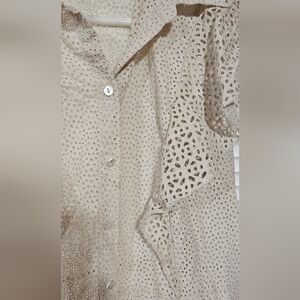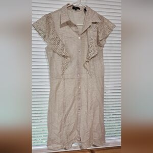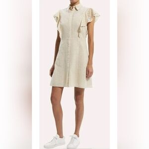 THEORY Nova Eyelet Ruffle Sleeve Mini Shirt Dress