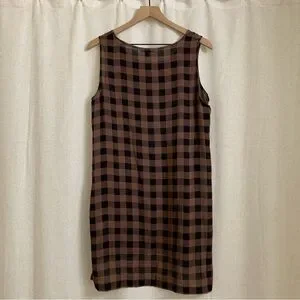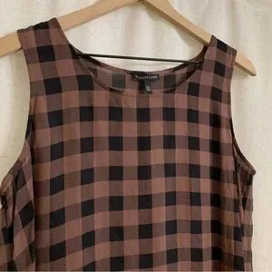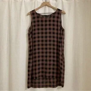 Eileen Fisher 100% Silk Buffalo Check Gingham Print Tunic Dress Large