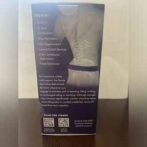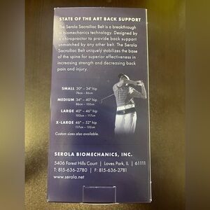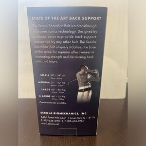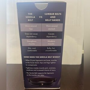 Serola Belt, new in box. Perfect for sciatic pain, helps prevent the onset.