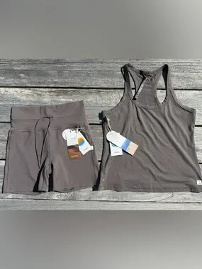 VUORI Set Lux Racerback Tank + Daily Short Set Chia Brown Size Medium NWT $113