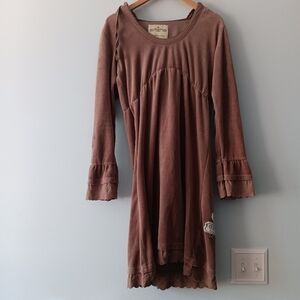 ChillNorway Brown Velour Embroidered Hoodie Dress L