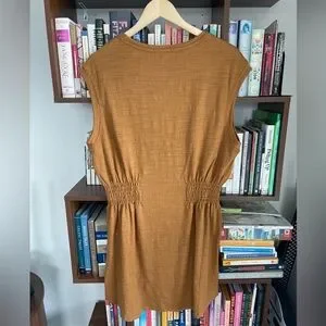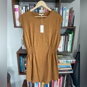 New with tags Z Supply knit mini dress in a warm camel/rust brown shade. Soft lightweight fabric with subtle texture, cap sleeves, and smocked side waist detailing for a flattering, easy fit. A simple throw-on-and-go piece that works well with sandals, sneakers, clogs, or boots.
