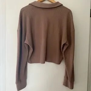 Abercrombie & Fitch Waffle Knit Long-Sleeve Top in Dusty Brown