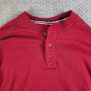Nike Men's Large Red Long Sleeve Henley Shirt Cotton Athletic Casual