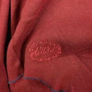Classic Nike long sleeve henley in a deep red color. Soft 100% cotton fabric with a button placket neckline and subtle embroidered Nike logo near the hem. Comfortable, versatile piece for casual wear or layering.