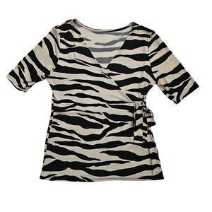 Womens Zebra Print Surplice Side Tie Blouse Tan Black Size Large Stretch