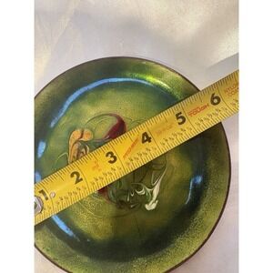 Vtg Enamel on Copper Trinket Dish Pin Tray Abstract Art Unsigned Hand Paint 5.5"