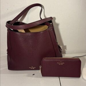 Kate Spade Leila Medium Purse Wallet set triple compartment Cherrywood Burgundy