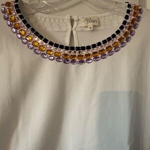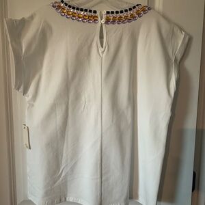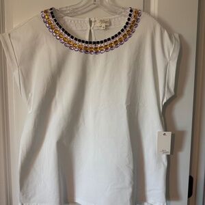 Ava James Beaded Round Neck White Short Sleeve Shirt, NWT, Sz: Large