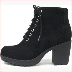 ✨ Second Lug Sole Chunky Heel Combat Ankle Bootie Lace up w/Side Zipper