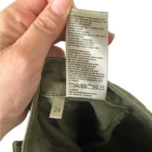 Made in U.S.A. Size 24. Approximate measurements lying flat are 13" waist, 1I" rise, and 26" inseam. In great preowned condition with no flaws.
