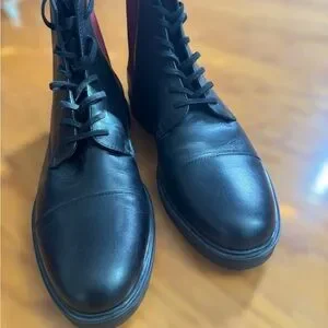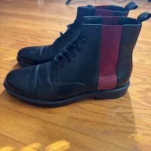 Calvin Klein Dameon Men’s Black Leather Lace-Up Boot with Red Side Panels 11.5