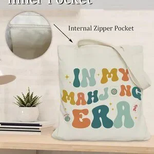 Mahjong Tote Bag Canvas Spacious Stylish Gift for Women Girls