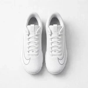Nike Vapor Edge Cleats Clean white athletic sneakers. Low-profile design with textured upper. Lace-up closure and subtle logo accent on the sides. Versatile everyday style.