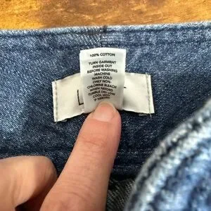 5 pocket medium wash 3 buttons for closure (two visible and one hidden) with short zipper