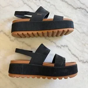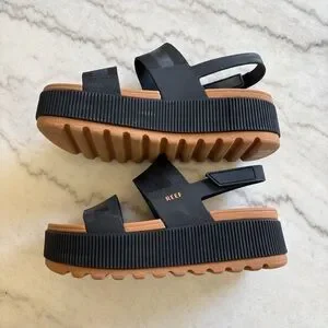 Reef Water Higher Vista Sandals size 8 in black and tan. Absolutely cutest sandals that I cannot wear. I have a super high arch and I always want to wear this type of strappy sandals and they hurt me. Cannot return so my loss is your gain!