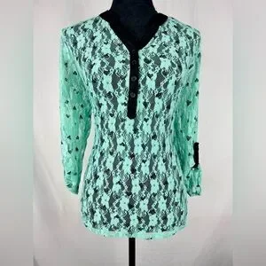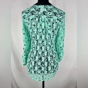 No Boundaries Mint Green Lace Long Sleeve Top with Black Roll Tab Sleeves