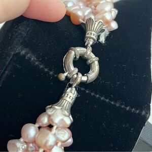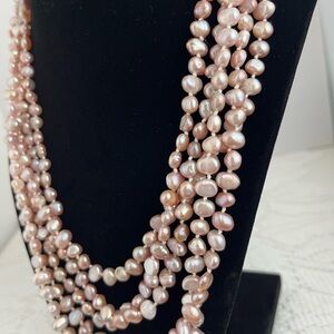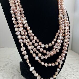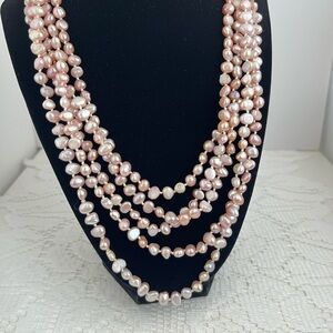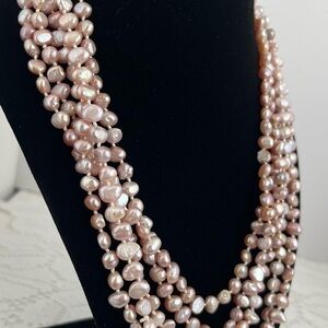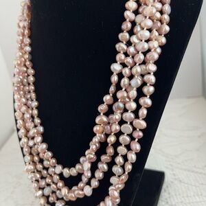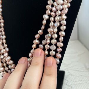 Chic blush pearls in a layered design. These pearls are absolutely stunning with their pink and purple tones and shine. Freshwater pearls so they are organically shaped.