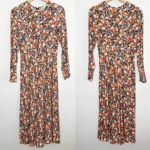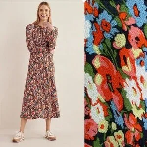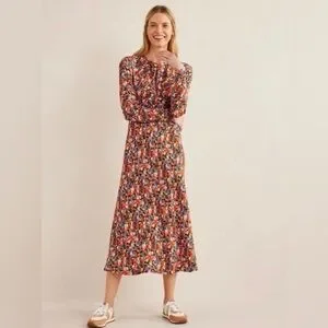Boden Crew Neck Midi Floral Tea Dress Multicolor Long Sleeve Size 6