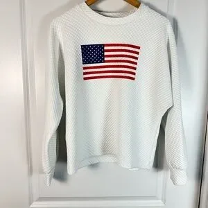 Item: Dudley Stephens P’town Quilted Sweatshirt Women’s Medium American Flag Textured Waffle Knit Dolman Sleeve Cozy Luxe