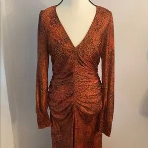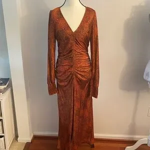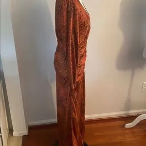 Melloday Runched orange and black medium maxi dress