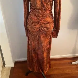 Size medium animal print Runched maxi dress by Melloday. 53 inches long and 18 inches pit to pit lying flat no flaws. 14 inch waistline lying flat but stretches