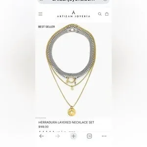 Artizan Joyería layered necklace in gold and silver. Three-tier design with mixed gold and silver chains for versatile everyday and special-occasion wear. Polished gold pendants and silver chain accents create a chic, modern look. In like new condition - never worn! However, I do not have the original box or packaging. As with all of my closet items- I price things to sell quickly- this is currently being sold new for 188 on their website.