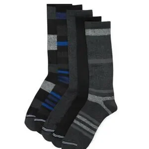 This Nautica men's crew sock pack includes 5 pairs in classic black, gray, and blue tones.