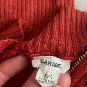 Garage Orange Ribbed Half-Zip Long Sleeve Top