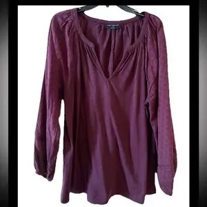 Lane Bryant Wine V-Neck Peasant Blouse