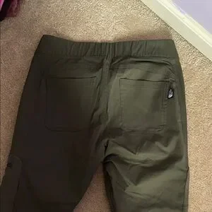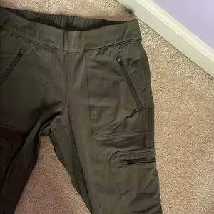 Performance leggings with elastic waist. Smooth stretch fabric for movement. Designed for active wear. Minimal seaming and branded label.