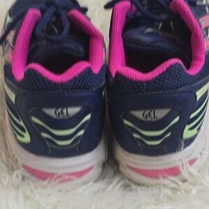 Experience the perfect blend of style and performance with Asics athletic shoes, showcasing a striking blue and pink design. These shoes feature a breathable mesh upper for enhanced airflow and a reinforced heel for added support during your runs. The contrasting sole not only provides stability but also adds a touch of modern flair to your athletic ensemble.
