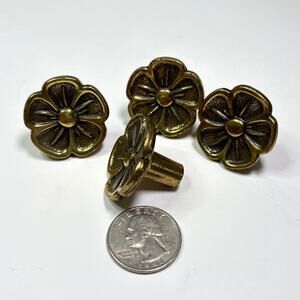 Set of 4 Vintage KBC N18322 Floral Cabinet Knobs Antiqued Brass Flower Pulls