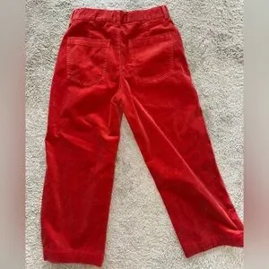 Ralph Lauren corduroy pants in a rich orangey salmon hue.. Button and zipper waist closure. Soft ribbed cord fabric for comfortable wear. Easy to style for casual outfits. Beautiful used condition