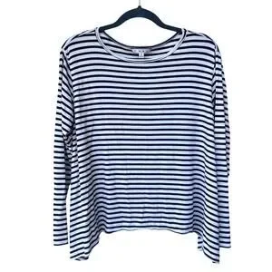 Cabi Striped Long Sleeve Top Sharkbite Hem Coastal French Style Nautical M