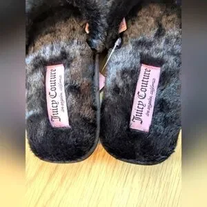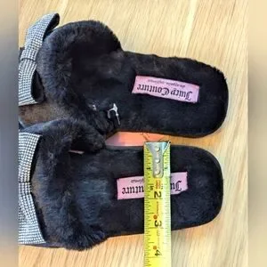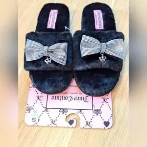 BNWT Juicy Couture Womens Furry Slide-In Slippers With Bow And Crown