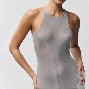 Sleek silver dress.