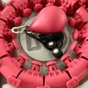 Detachable, adjustable segment hoop in bright pink. Includes central weighted pod and clip. Smooth plastic finish. Great for at-home workouts and core toning.