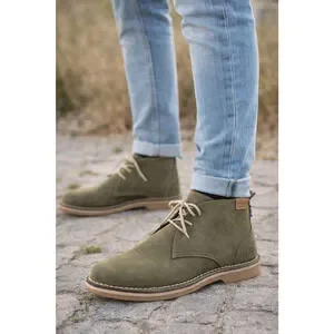 The Veldskoen SORAI Leather Chukka Boots in Olive Green are a stylish and durable option for men and women looking for versatile footwear. Made with high-quality leather and a comfortable leather-lined interior, these boots feature a round toe, lace-up closure, and a rubber outsole for added durability. The unique safari rhino design on the heel, along with contrast stitching and a natural gum sole, adds a touch of South African craftsmanship to the minimalist and rugged casual style of these boots. Features signature rhino logo, durable crepe sole and handcrafted construction. Comfortable wide fit with classic desert boot styling. Whether for travel, activewear, casual outings, or workwear, these boots offer comfort and support for all occasions.