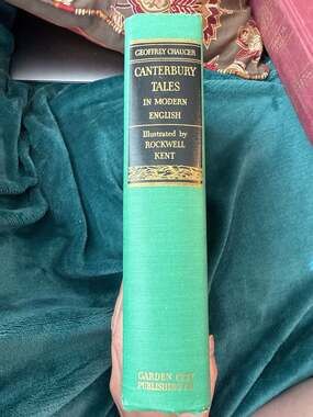 1934 Canterbury Tales by Geoffrey Chaucer, De Luxe Edition — Illustrated by Rockwell Kent. This vintage hardcover edition is rendered into modern English by J. U. Nicolson and features the iconic typography of Robert Josephy.