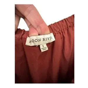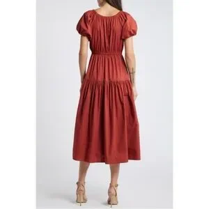 MOON RIVER Puff Sleeve Tiered Midi Dress in Brick. MSRP $98.00