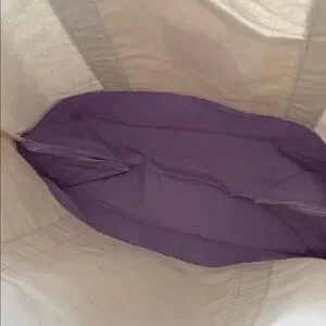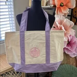 NWT. Large size. Lavender & cream with pink embroidery. Cotton blend canvas. Excellent NWT condition - no rips, tears, or stains. Flat lay measurements are approximate.