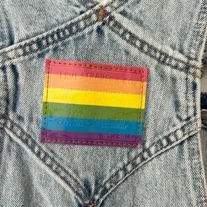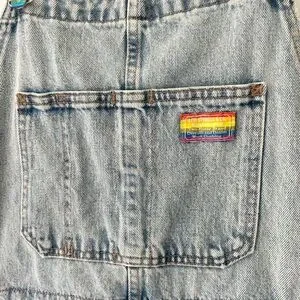 Rare Levi’s Pride Liberation Denim Short Overalls Medium Rainbow Patch