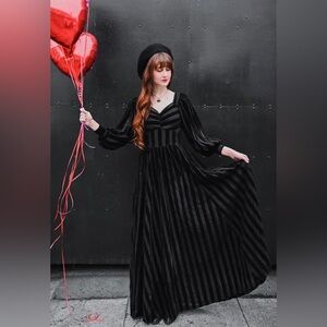 I have for sale this gorgeous sheer fine mesh and velour/velvet striped dress by Foxblood in a size medium. This dress is stunning and has a vintage vibe to it!