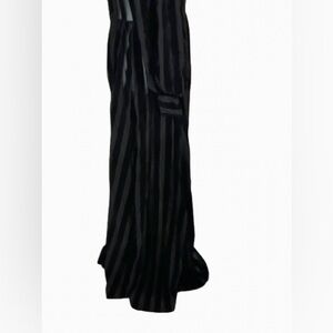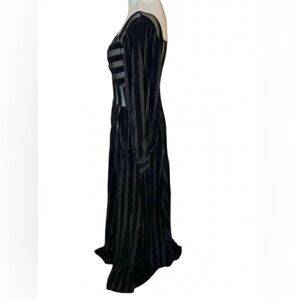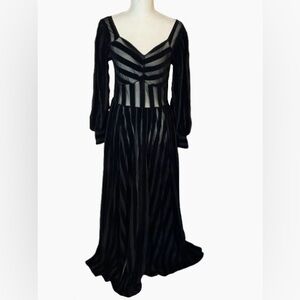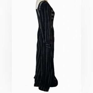 Foxblood Medium Velvet Velour Striped Sheer Gown Peasant Gothic Vintage Maxi
