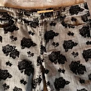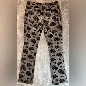 Chico's Platinum Denim Grey Jeans w/ Black Floral pattern (See chart in pics)