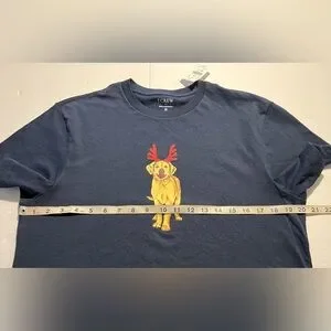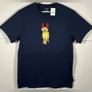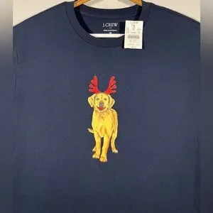-You are buying a brand new NEW J Crew Christmas T-Shirt Sz Medium Navy Golden Retriever Antlers Graphic Tee (has small tag hole on the left sleeve) view pictures overall New never worn